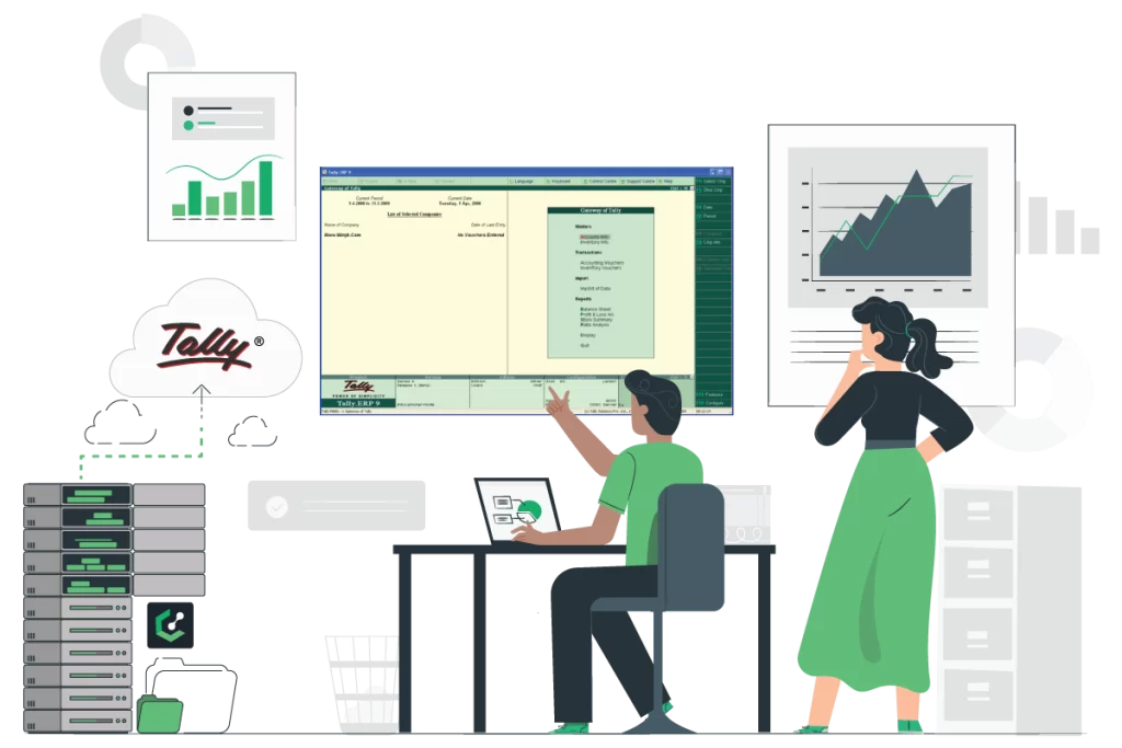 The Tally on Cloud server for cloud accounting provides a way to access your previously downloaded but now cloud-based Tally accounting software. Tally data will be accessible on any device, at any time, from any location. An inexpensive and low-maintenance option for keeping track of your finances. The Tally On cloud is where ERP 9 is housed.